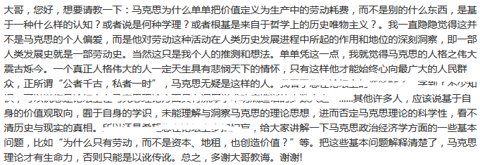 当我重新捡起经济学的时候,我不再是从质疑马克思开始,而是从检讨自己一开始的出发点开始。我的出发点是反对和驳斥马克思的,我反驳他的一切理由,最根本的基础在于,我看到的情况,比如说,干活卖力点,产品就多,产品多了价格就下降,这叫供给决定下的价格。我想多买点总是希望价格下降,但大家都这样想,于是需求就增加,购买者之间j的竞争导致价格上升,这叫需求决定价格。其实,哪怕是高深的,庸俗经济学理论,其实当你用普通语言去解释那些方程时,你会发现,其实它就是那些菜市场或者股市里你可以看到的东西,只不过,他不用另一种文字——数学符号——来写,于是,很多人就觉得很了不起。在老挝,你用法语讲话,就是上等人,你用l母语讲话就是老百姓。今天我们回头看古埃及或者是印度,你觉得由语言和姓名决定贵贱实在是没有科学依据的事情,但其实我们没有摆脱这样不科学的习气。