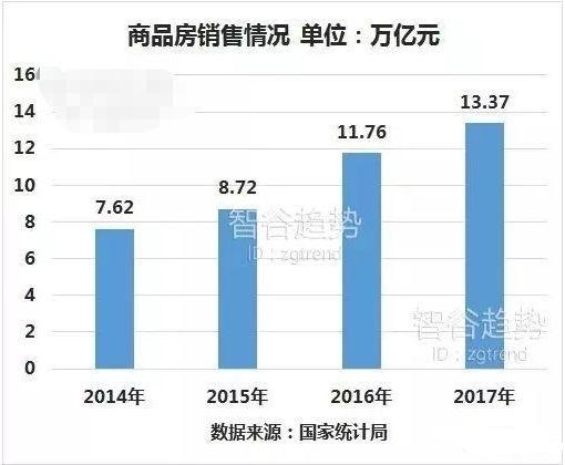 这也不奇怪,2017年全国商品房销售额新增了1.61万亿,而