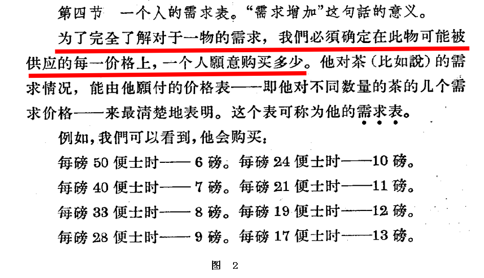 图3中的文字内容,是在分析交易者如何在内心权衡某一价格对应的购买数量。这就是对交易者对其中一个行动方案的盘算方式,是一种心里活动。