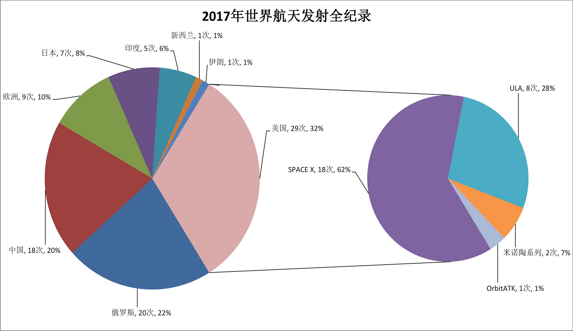 图7 2017全球航天发射次数和SpaceX 的发射次数