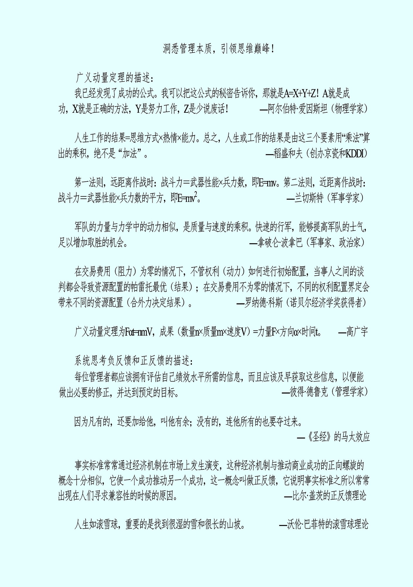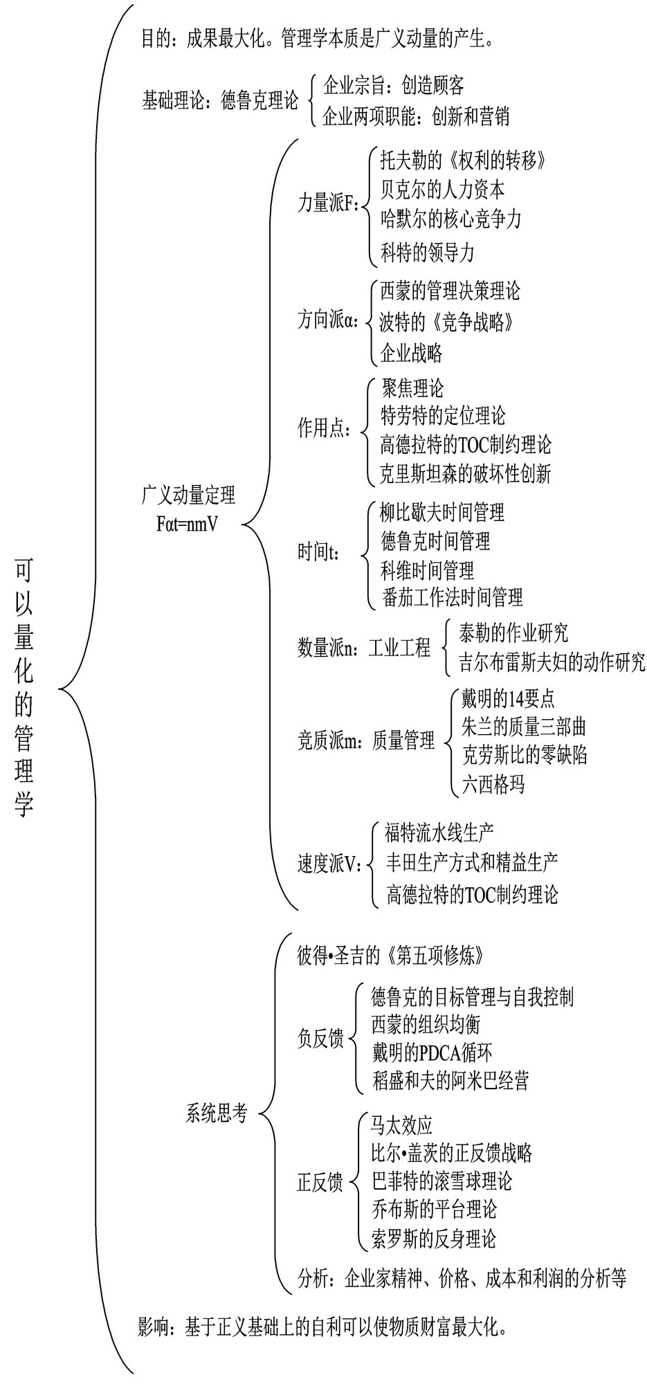 《可以量化的管理学》使用物理学的广义动量定理和系统思考两种方法分析各种管理学理论,将管理学分为十大流派,并且分析了每一派的本质以及产生成果的原因(如图11所示)。