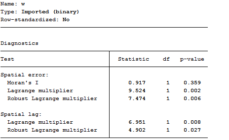 15010813556 发表于 2020-6-21 13:26 楼主,这是我做的面板LM检验,这个结果说明我该用什么模型呢? 还有我非常费解的是莫兰指数为什么这里是 ...