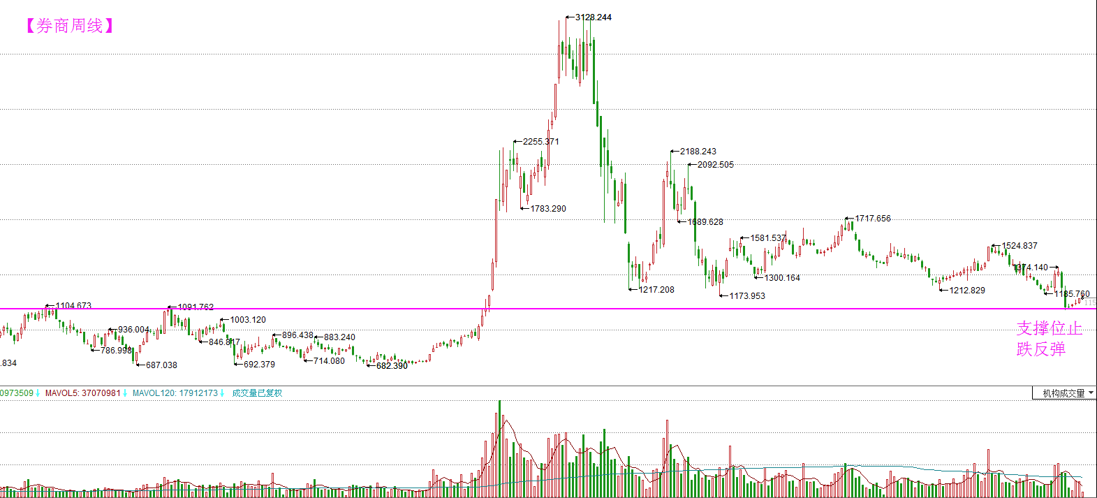 券商周线显示,指数在触及跨2012—2013年的双顶支撑位后,止跌上行并收出3连阳,对于超跌品种而言,券商是一个非常好的战略性低吸机会品种。