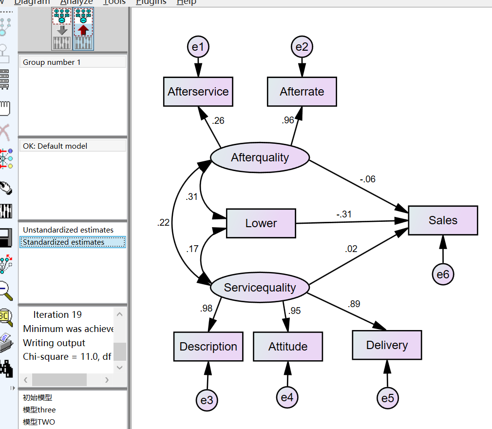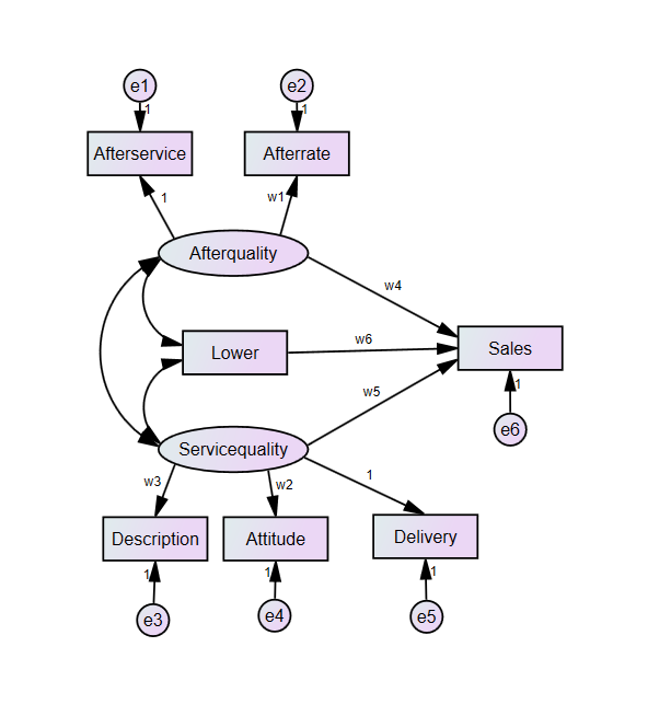背景介绍:我没有做问卷。我用的全是数值数据,只是自己添加了两个潜变量,潜变量是由可观测变量影响的。研究的目的是找到销量sales的影响因素,是基于淘宝店铺评价数据做的。比如:after service rate 指淘宝的售后率。