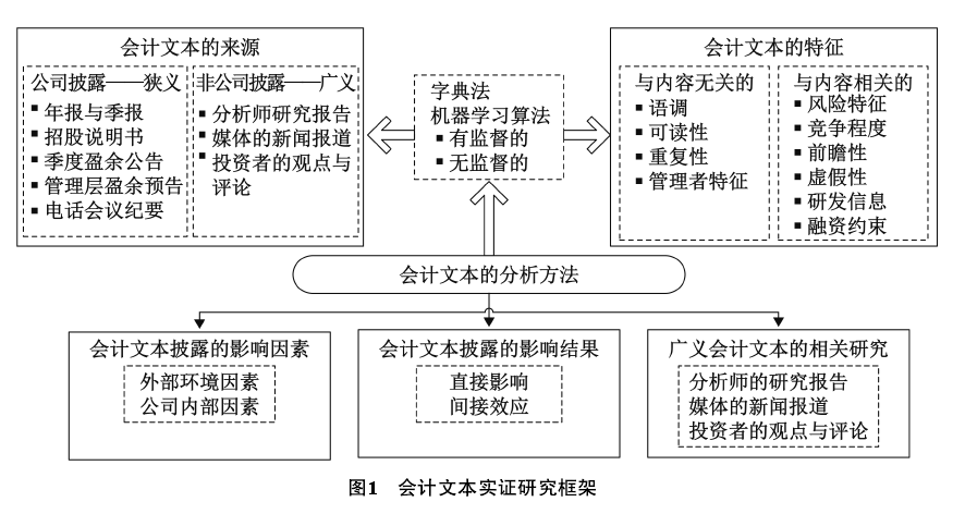 近年来,文本信息逐渐成为国外会计实证研究的热点,许多学者开始致力于运用文本分析方法来解决会计与财务问题,并取得了众多有价值的研究成果。会计文本一般指由公司发布的具有会计相关性的文本信息。