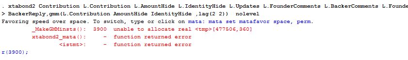 在用Stata对非均衡的面板数据进行GMM模型回归的时候,出现了下面的错误: