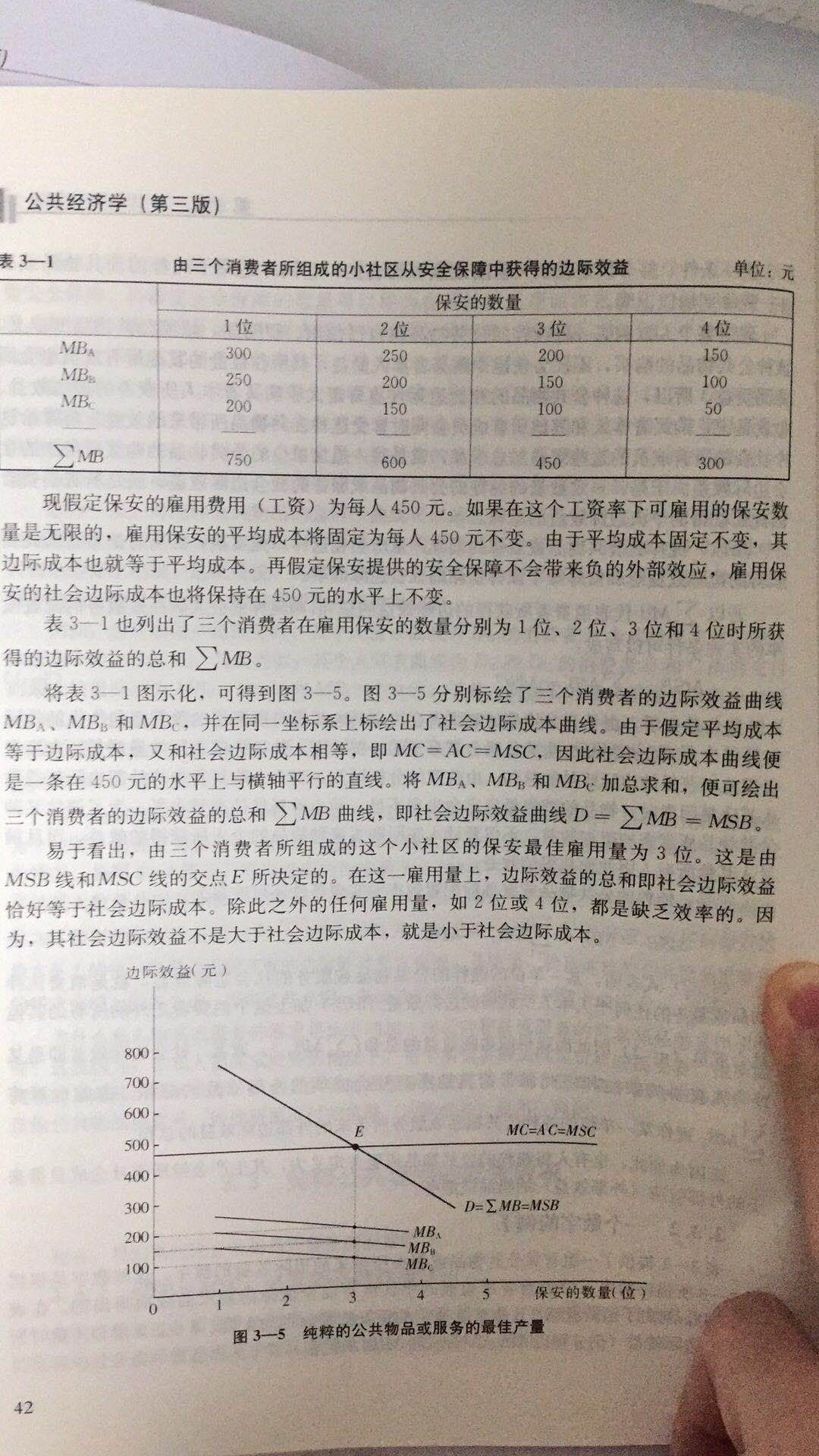 其次,回到这个题。虽然对个人来说,第×个产品所带来的满足不同,但如果购买或者享用,最终都是按确定数量的最后一单位所带来的边际效益出价。这个和微观经济中的消费者行为理论是一致的。(例如此时大家商定雇两个保安,那么就得探讨三个人之间如何定价或分摊成本的问题,那对A而言,不可能说给第一个保安付300元,给第二个保安付250元。)A会按第二个保安带来的效益来报价,即每个保安付250元,同时对A而言会有50元的消费者剩余。