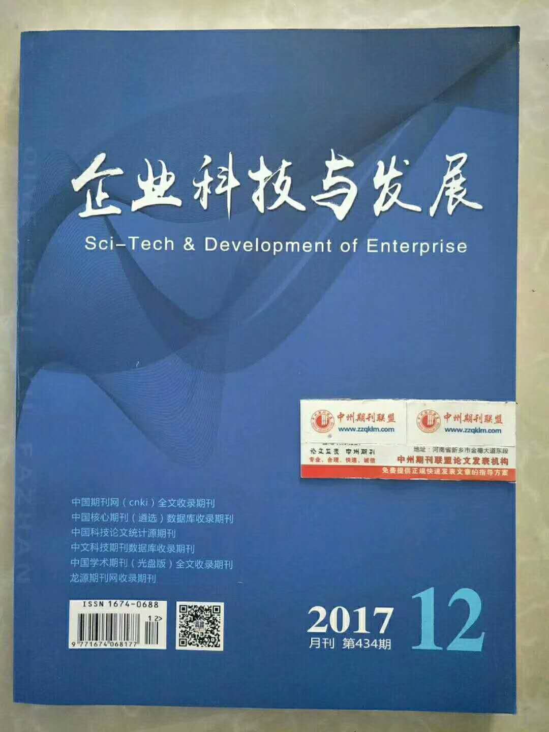 《企业科技与发展》杂志由广西科学技术厅主管、广西科学技术情报研究所主办,1985年创刊,国内统一刊号CN 45-1359/T,国际标准刊号ISSN 1674-0688,国内外公开发行,月刊,复合影响因子:0.096,综合影响因子:0.039。本刊为中国期刊网(cnki)全文收录期刊、中国核心期刊(遴选)数据库收录期刊、中国科技论文统计源期刊、中国学术期刊(光盘版)全文收录期刊、中文科技期刊数据库收录期刊,是全国企业科技类重点刊物之一。