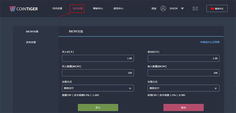 我持有人民币,如何用人民币直接购买比特币等数字货币呢?在CoinTiger,用人民币炒币,仅需要两步。
