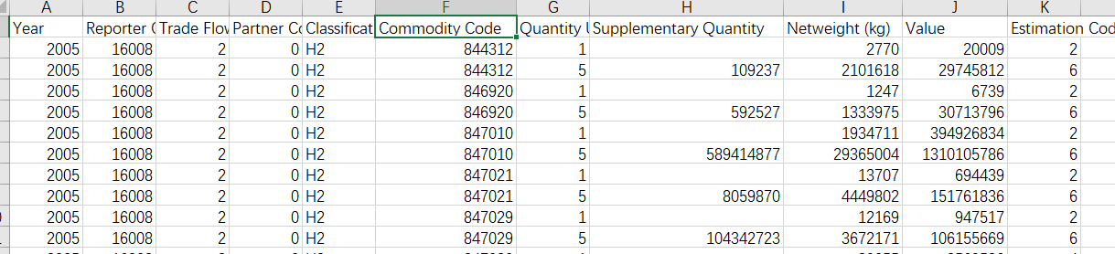 有谁知到按照商品编码在un comtrade数据库中查到的相关信息怎么解读啊