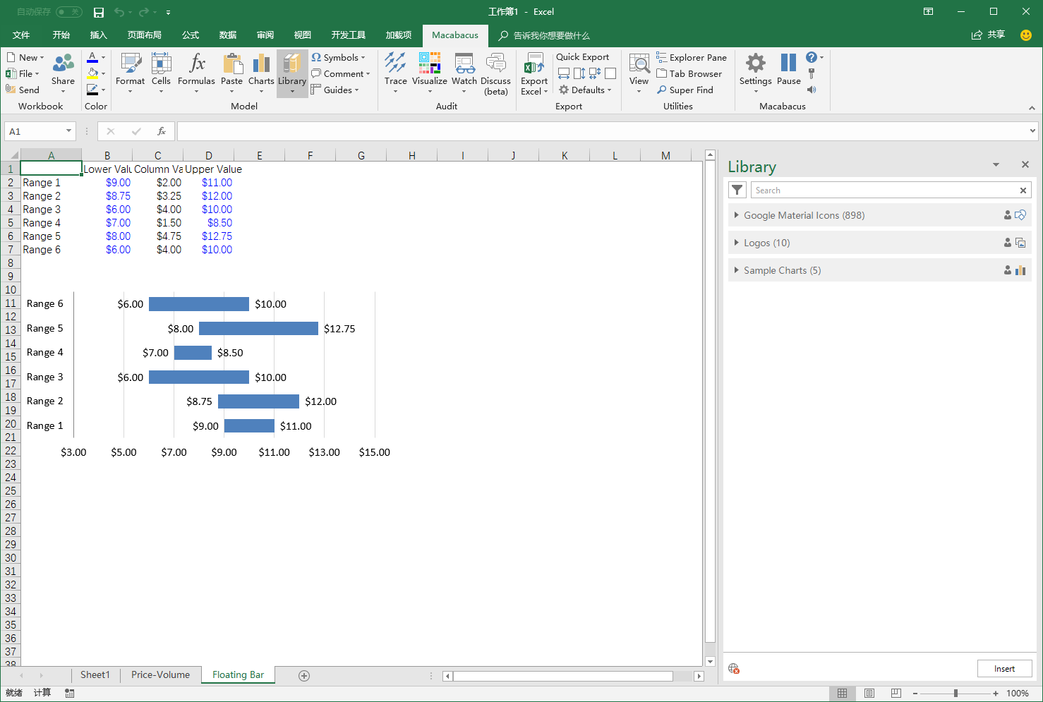 - Easily create complex charts used in finance and consulting, including waterfall, football field, butterfly, and Marimekko charts