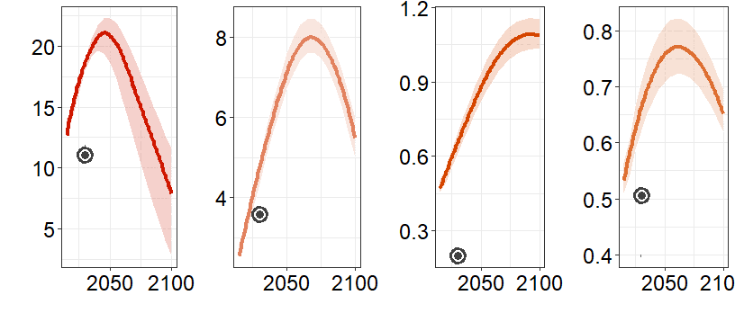 请问各位大神,在R语言使用grid.arrange 的时候会出现当坐标单位有小数的时候,会出现1)画图区域的宽度不等 2)最后一个图的横坐标显示不全(2100最后缺了一个0)