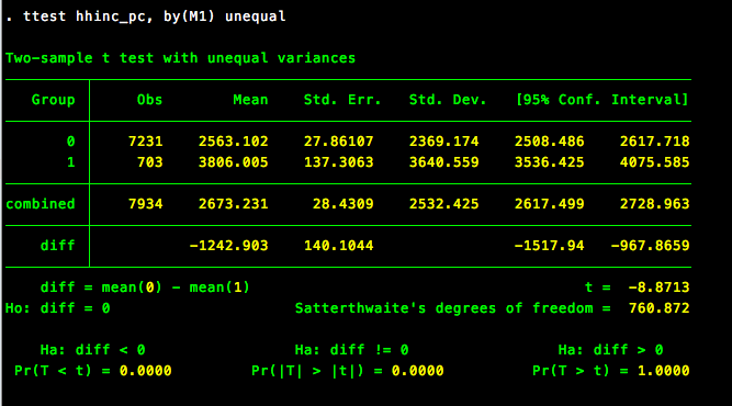 求问下图图片中的结果怎么看?三个pr值是代表什么,原假设是什么,最后是接受还是拒绝呢,说明两者有明显差异还是没有呢?请帮忙解答!感谢!!!
