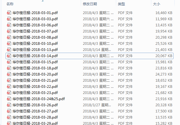 我收集了一下华尔街日报3月的所有报告,3月发生了中美贸易战这样的大事,可以关注一下国外媒体对此事的追踪和报告。