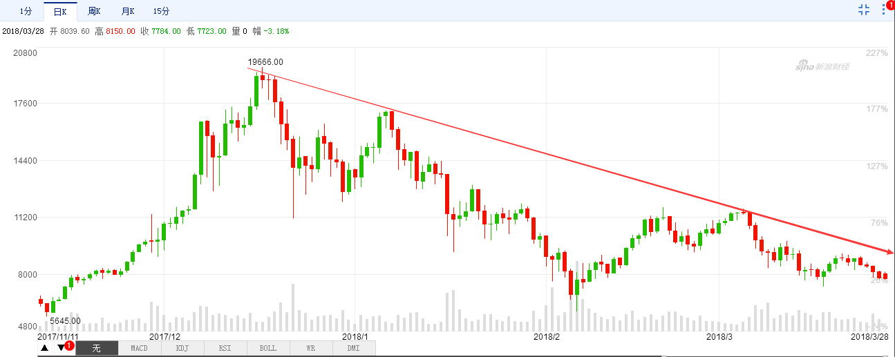 从日线周期上来看,市场一直处于一个下跌趋势,我们在这个周期上,一直以看空为主,操作上也以看空为主。