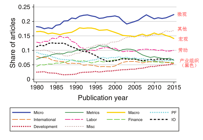 微观应用研究的主要三个领域——劳工经济、产业组织、公共财政研究不断萎缩