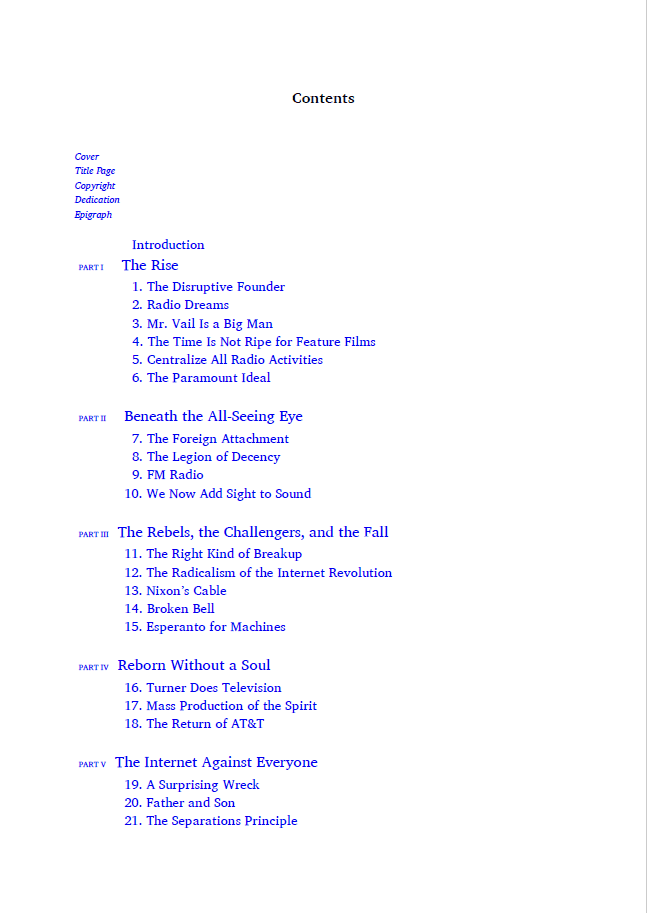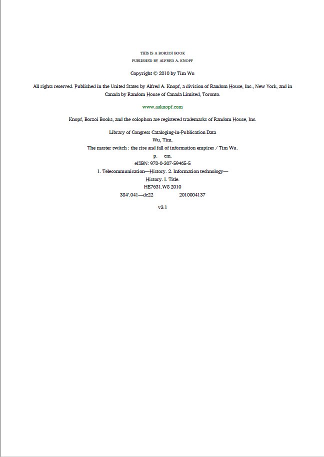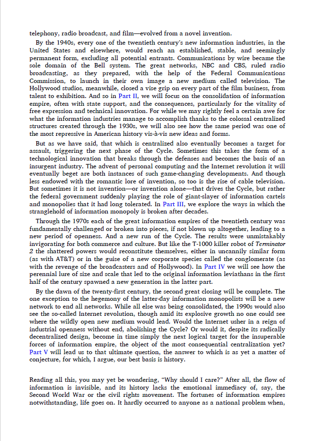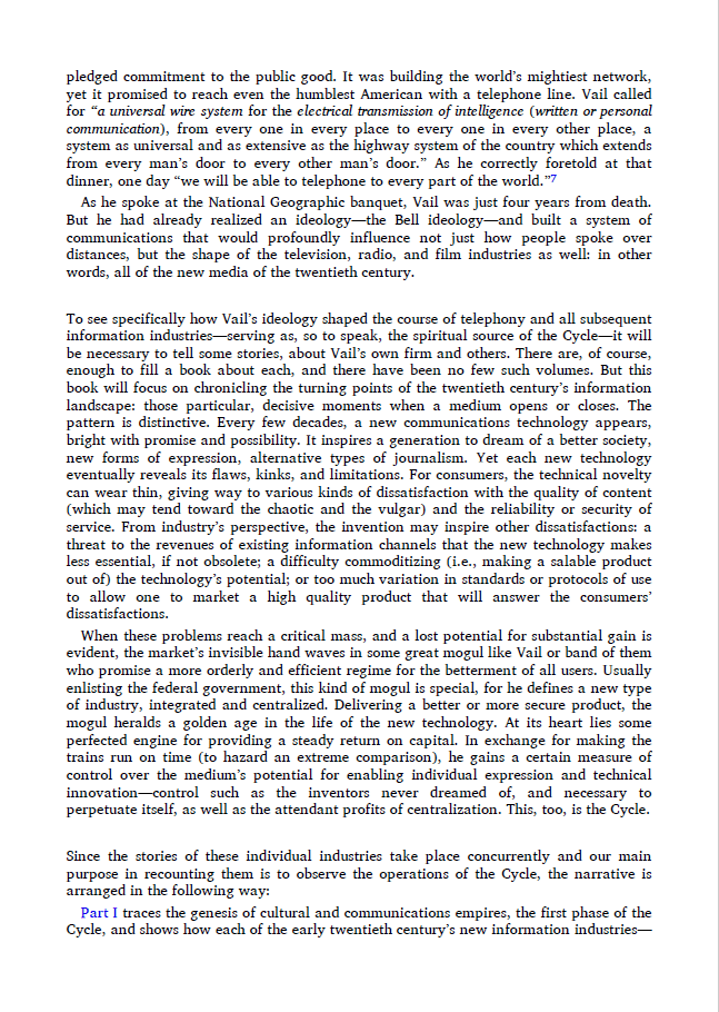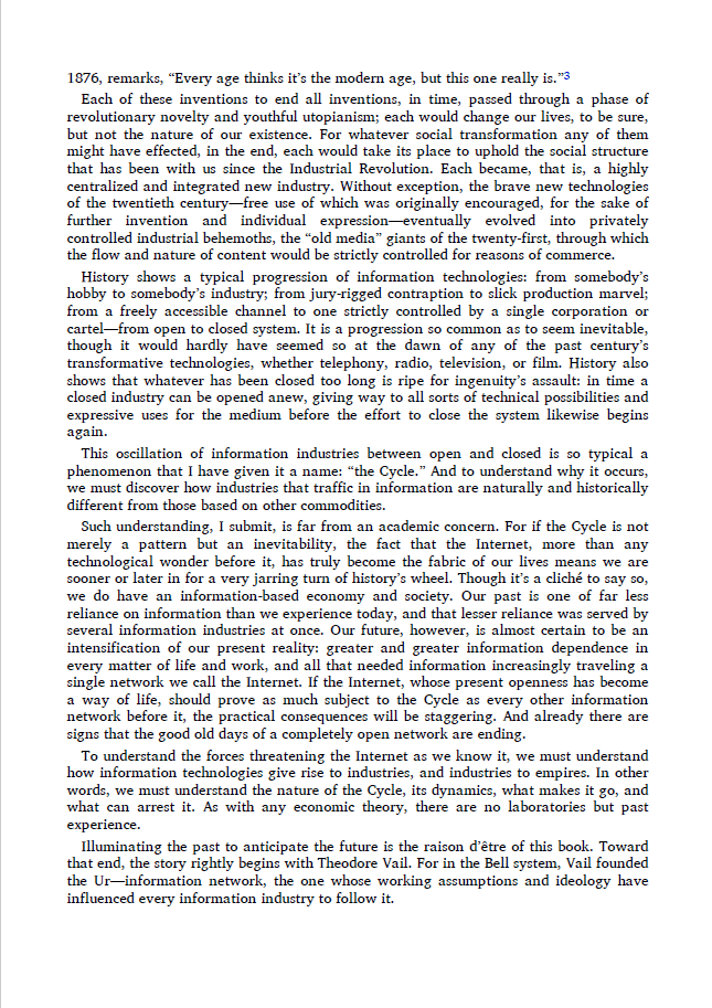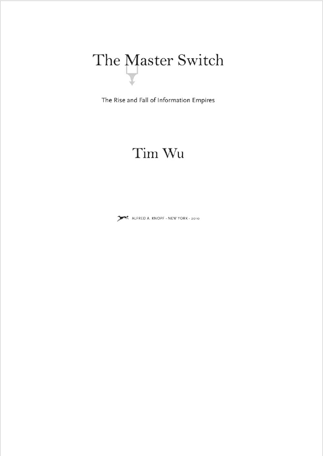 数字思想家吴修铭预言互联网世界的未来—这不是无端的猜想,而是从广播﹑电视﹑电影等信息媒介的发展周期得出的规律:新信息技术的发明;新产业的建立;一段开放的发展期;最终,由行业巨头占据统治地位,掌握着信息流的总阀门(the master switch)。互联网是否也要经历这样的轮回呢?答案在作者的笔端。