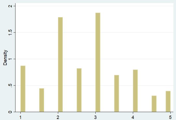 statax 发表于 2018-4-19 16:26 你可以把九种数值重新设定为1至9的整数,就可以了。不过你的分类太多,ologit效果会不好。可以试一下。