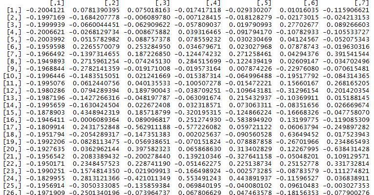 后来我用SPSS和Matlab分别求了这组数据的相关系数矩阵的特征向量,结果显示第一列全是正数。