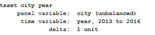 面板数据,我的数据都已经齐了,为什么还显示我的为非平衡面板数据,21一个市4年的shu