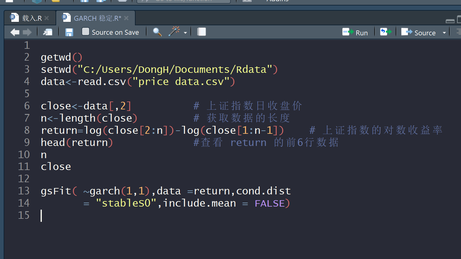 R语言 GARCH模型 用GEVStableGarch包里的 gsFit (其中的基于稳定分布)老出现错误