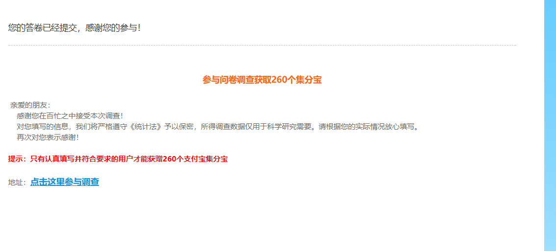 网络体验对消费者在线预订旅游产品的影响的调查--问卷填写完成页面.