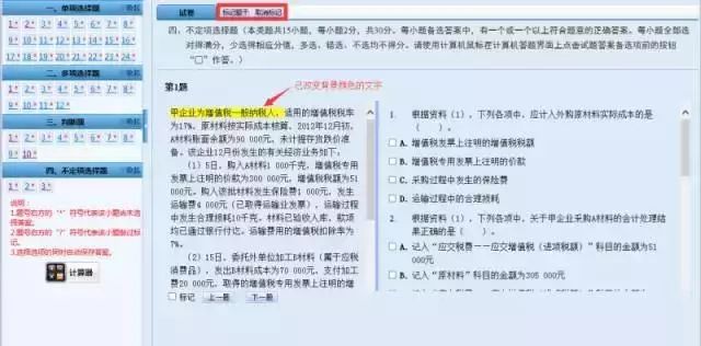 2.标记功能,可以标记没有思路的题,方便最后答题。