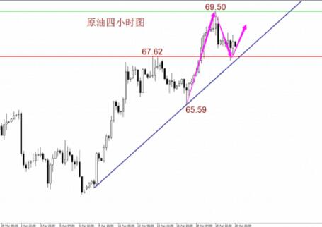 故综合来看,油价上行趋势依旧延续,日内短线操作上应关注68.0附近的企稳状况并择机低位布局多单思路为主。油价虽有回踩,但整体趋势不改,操作上关注68.0一线企稳布局多单思路为主。