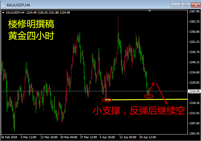 黄金缺乏基本面上的推力,不升下跌实属合情合理。中美贸易战已经走向缓和,全面对话有望开启打压金价;中东叙利亚还是如第一次一样,只是起震慑作用并未想实际动武,不是利好相反动力消失是利空;半岛局势走向对话,朝美、朝韩将实现会晤,核威胁被解除,避险消退黄金下跌。美联储将在2018年三次加息,3月份已经加息一次,预期6月份还将加息一次,若果真如此,市场走预期,那么黄金还将下跌。