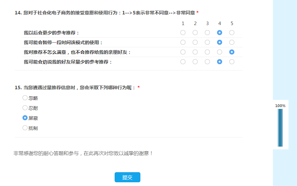 问卷已经填写