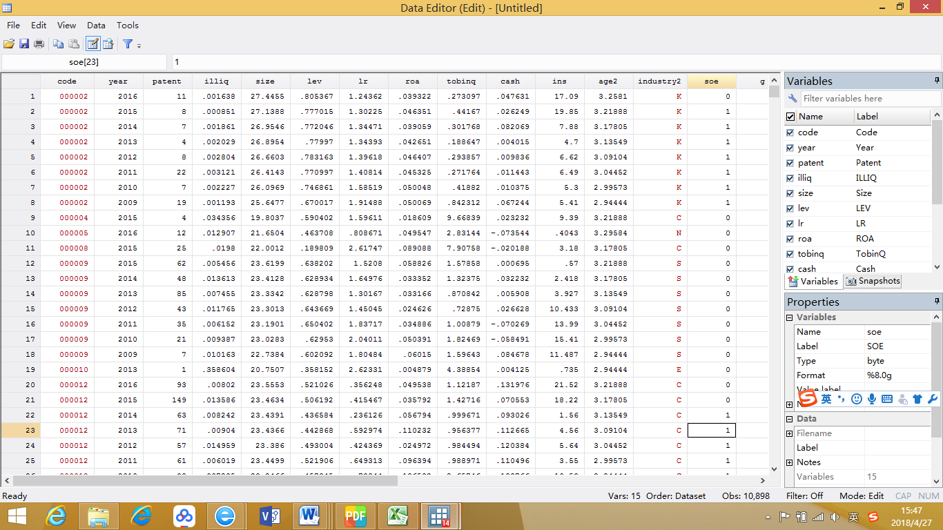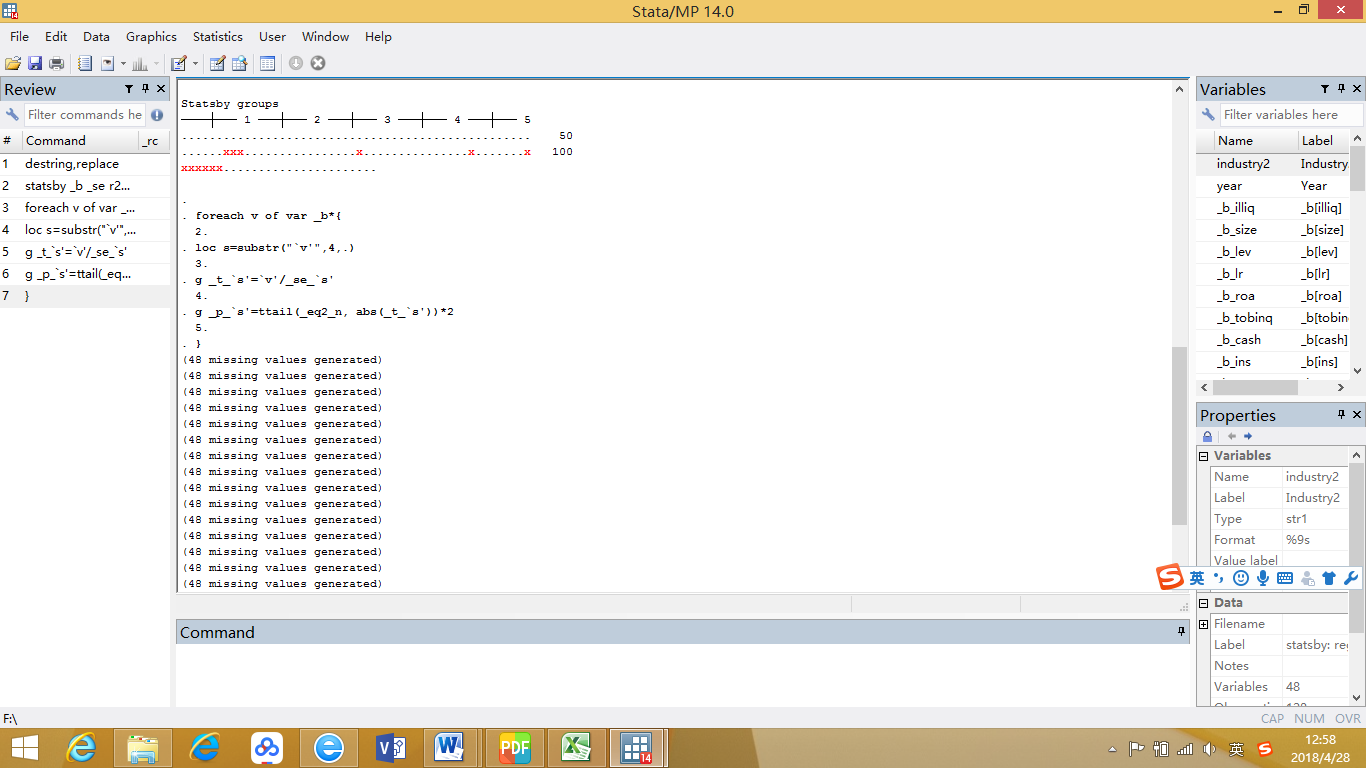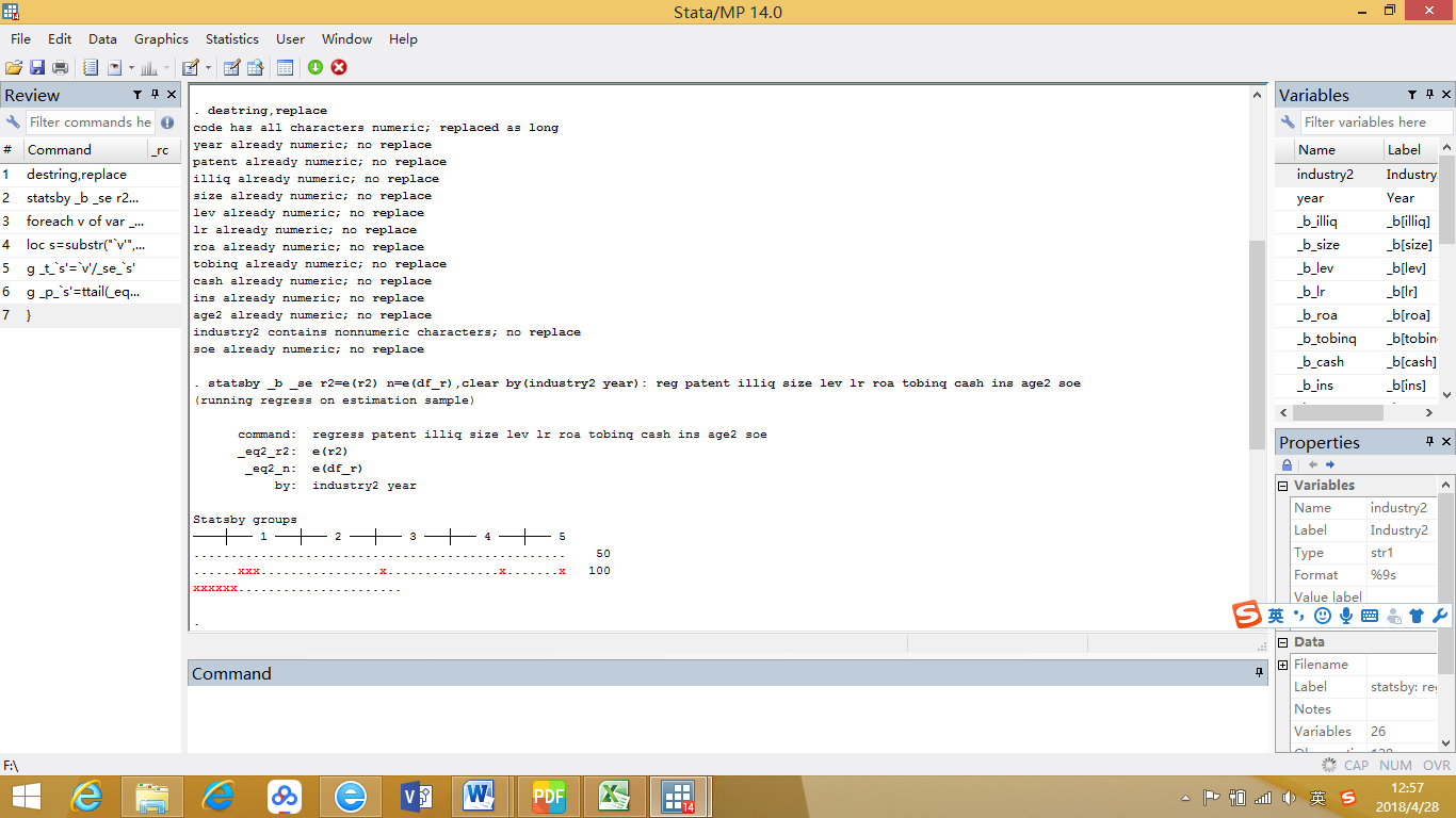 很感谢您的回复!我之前也用了statsby做回归,用下面这些代码,但是总是会出现insufficient observations的错误Ծ‸Ծ,可以麻烦您帮忙看一下吗?万分感谢!