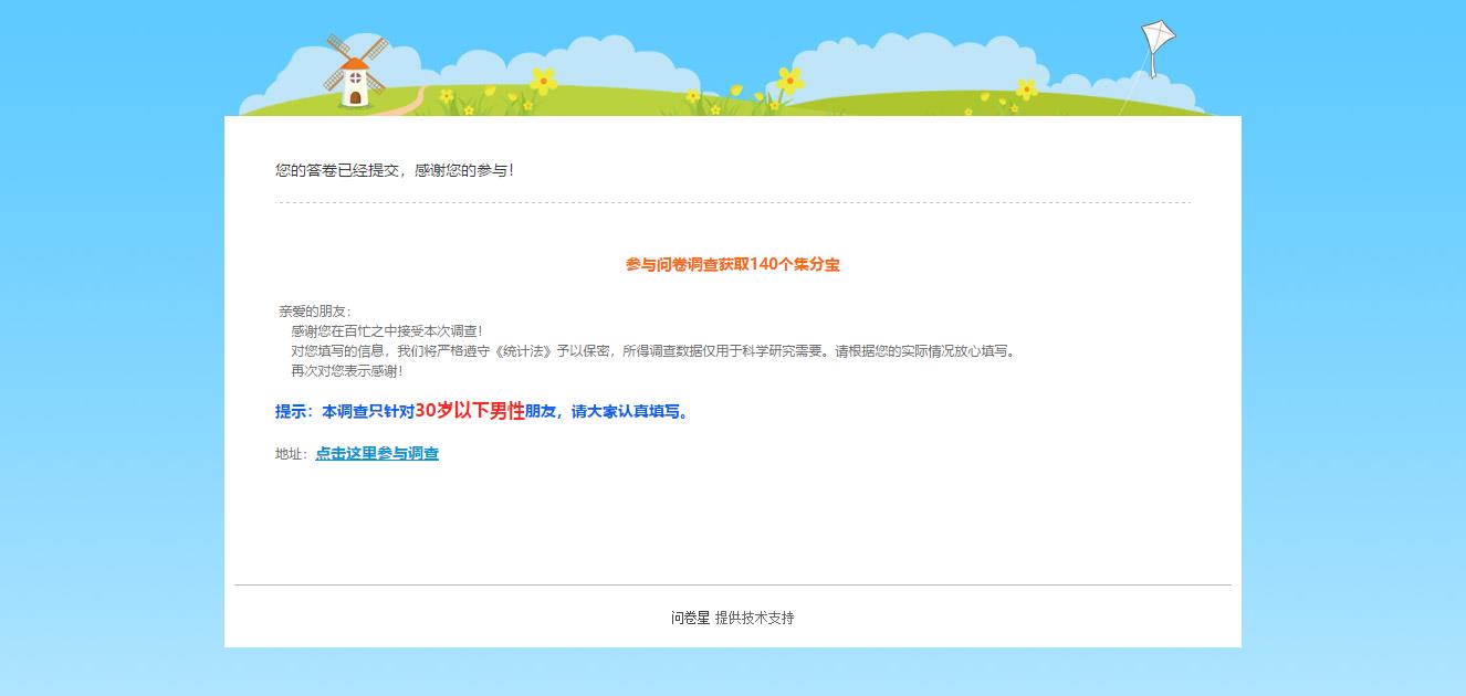 https://www.wjx.cn/wjx/join/complete.aspx?q=22972451&JoinID=101509550752&jidx=213&tv=136&s=&hjfb=1&sa=20&ea=24&ge=2&edu=5