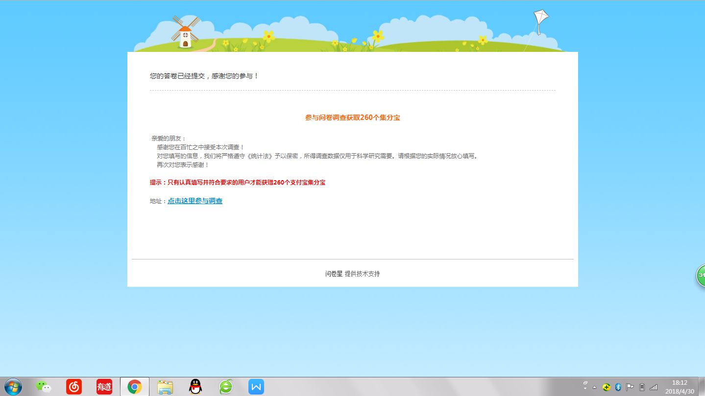 已填写完问卷,祝研究顺利,楼主这没有上传附加的按钮,这是完成问卷的最后界面,注意查收。已完成问卷调查