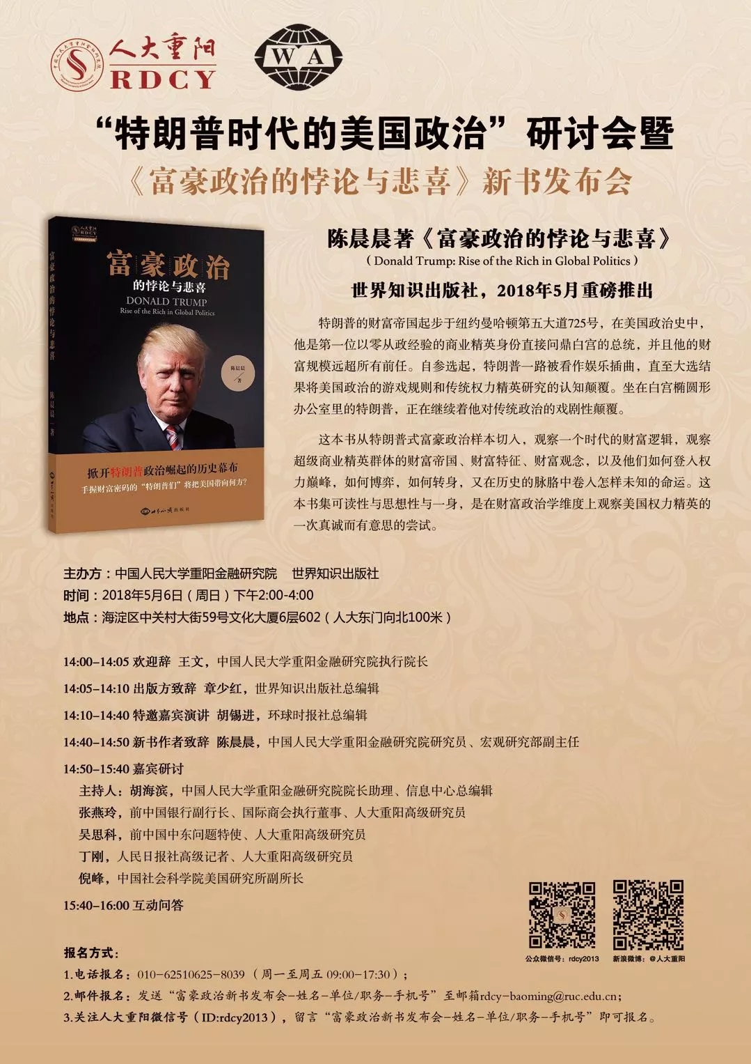 【新书发布】“特朗普时代的美国政治”研讨会暨《富豪政治的悖论与悲喜》新书发布会[北京]