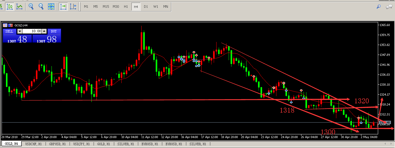 摘要: 如果你手上还套有单子,无论多空,老南将全力为你解套。每个人单子的情况可能都会有不同,重点是需要知道你的点位、风险、仓位等情况,没看到之前,没有任何人光说就可以给你去解套,那都是不现实的,重要的时间做对的事情,提高效率才是重点。 基本面: 周三美国数ADP的公布以及美联储维持利率不变的决议发布,FOMC声明称,维持利率不变的决议获得一致通过,经济前景近期面临的风险大致均衡;就业增长强劲,经济活动表现温和;重申认为经济保证继续渐进式加息;预计通胀率中期将在“对称”的目标附近。决议称,2017年第四季度以来,支出出现温和增长,投资增速强劲;基于市场的通胀保持在低位接近2%。声明发布后,联邦基金利率期货显示,美联储6月加息的概率为95%。外媒称FOMC声明取消了有关经济展望走强的趋势。 据华尔街日报也指出美联储在货币政策会议后未公布任何消除有关美联储在6月会议上加息的市场预期的信号。本周重点关注周五的非农数据公布。 技术面: 黄金 昨日黄金从4小时图来看,形态结构空头走势不变,走势依然偏弱,整体依然承压1350到1320的下降趋势线运行着空头走势结构,昨日虽然有强势反弹,但是并没有改变黄金短线弱势空头走势结构,操作上还是要继续保持反弹做空的节奏不变,从指标来看,RSI中部拐头向下,Stoch指标高位死叉,指标上显示黄金偏向调整的概率大。综合来看,若下破1300关口,则跟空,看极端下跌,上方关注MA5也就是1313一线阻力,下方支撑1300关口,不破位看区间震荡,以做多为主。操作上回落做多为主,高位做空为辅。今日观点:低多为主,高空为辅。上方关注1313---1318的两个阻力位,下方关注1300支撑位。1.建议1305附近做多,损1298,目标1318;2、建议1318附近做空,止损1322,止盈1310附近; 欧美 昨日欧美惯性下跌,从技术面看,MACD绿色动能柱大幅收缩,KDJ指标低位继续下行,预示汇价下行风险依然较大。汇价上行初步阻力于1.2030,进一步阻力位于1.2080,更关键阻力位于1.2150;汇价下行的初步支撑位于1.1930—1.1900,今日观点:低多为主,高空为辅,1.欧美在1.1950附近做多,损1.1900,目标1.2030—1.2080; 镑美 昨日镑美惯性下跌,从技术面看,MACD绿色动能柱基本持平,KDJ指标低位再度向下,显示汇价下行动能仍在释放。汇价上行的初步阻力位于1.3670,进一步阻力位于1.3720,汇价下行的初步支撑位于1.3550,今日观点---做多为主。1.镑美在1.3560附近做多,损1.3530,目标1.3650上; 备注:个人建议,仅供参考 轻仓操作,严格止损 GongZongHao:股市小牛刀