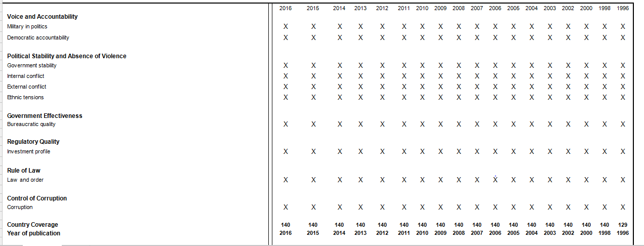 小飞猪的小飞屋 发表于 2019-2-6 22:53 请问您有这几个指标的数据吗six ICRG political risk variables: corruption in government, rule of law, ...