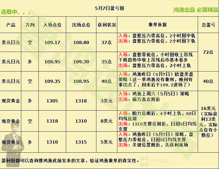 下面有鸿逸昨日的盈亏单及今日的持仓单,今日早间有按鸿逸策略进场的投资者,你们的进场点位也都比我的好,对于鸿逸持仓单里面的目标点位是鸿逸理想的点位,不一定能到,建议大家手动止盈。昨日晚间鸿逸回去后自己又做了几单,今天早间都获利不少的,但早间鸿逸出去有事了也没平。