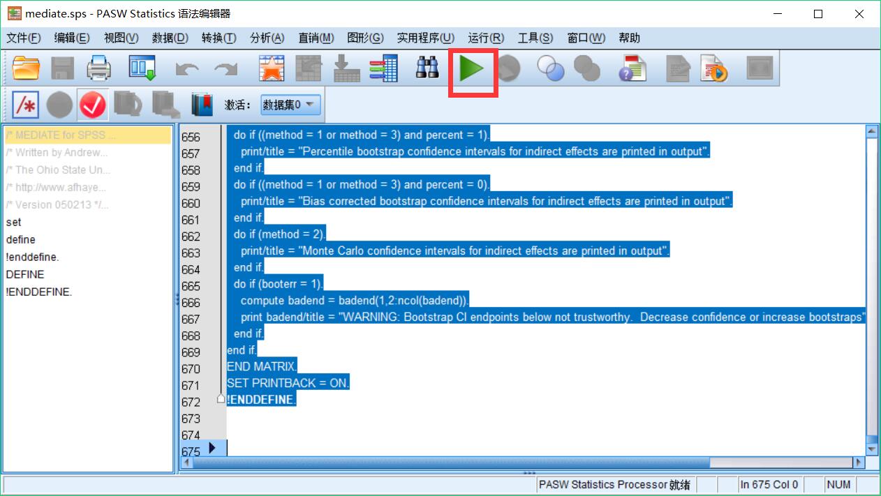 求助关于SPSS中使用mediate脚本的问题