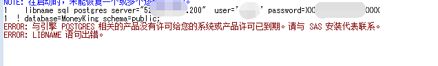 ERROR: 与引擎 POSTGRES 相关的产品没有许可给您的系统或产品许可已到期。请与 SAS 安装代表联系。