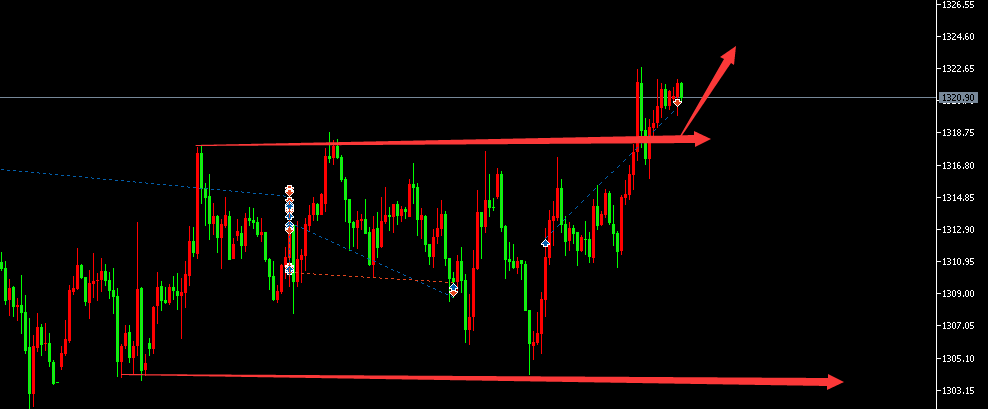 黄金早盘出现回调,但1小时图突破三角型整理形态,继续上攻的形态比较明显,多头偏强,欧美盘可以继续低多为主。1317-1319可以布局多单,目标1325-1328。
