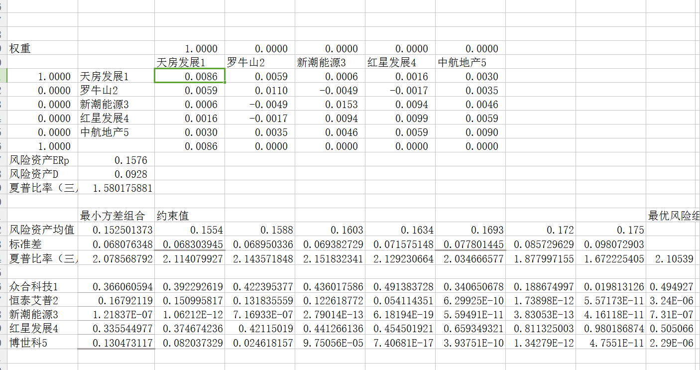 excel做投资组合有效前沿问题