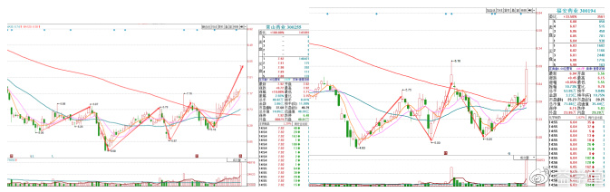 就拿一哥上周加大自选股的【常山药业 300255】来说,今天受利好刺激一字板涨停;今天早间选出的【福安药业 300194】,选出后没过多久就冲击涨停,收盘涨幅8个百分点。这两只涨的一哥有点措手不及,本想分享给老朋友的,现在只能是看看就好了。