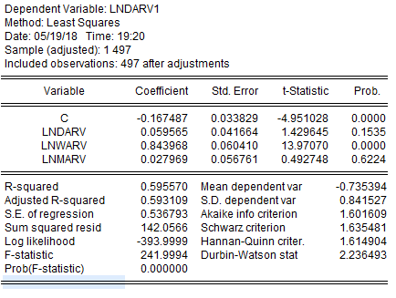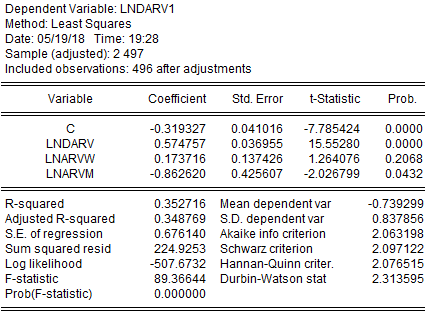 LNARVD -0.552896 0.042395 -13.04156 0.0000