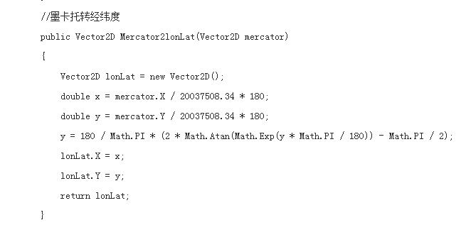 如附图所示是我从博客上找的代码,但是不知道去怎么用。万分感谢,我怕自己描述不清,简单粗暴上传了图片。主题:墨卡托坐标转换成经纬度坐标(最好是WG84)因为要用到GIS中,做空间集聚分析。