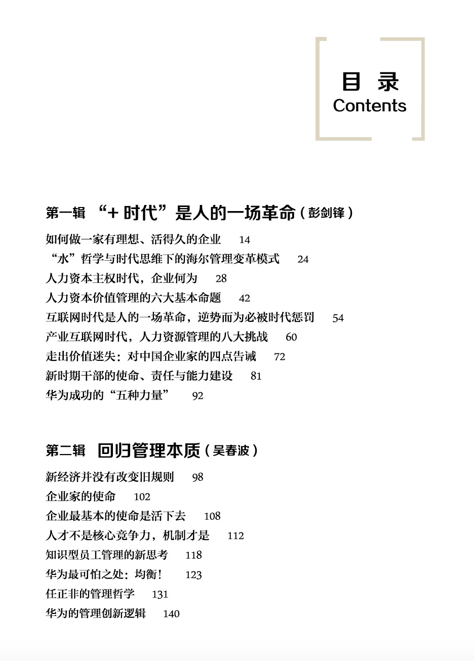 变化就像希腊哲学家赫拉克利特所说的:没有人可以两次踏进同一条河流。变化是常态。这使得我们更需要回归人的本质、管理本质去追问,回归我们的文化基本面、价值基本面、管理基本面思考企业的未来;同时我们更需要有创新性思维,逾越沉弊痐旧,以创造性的姿态介入全球化的中国发展之机,走出重重迷雾,更高更自由地飞翔。这正是我们编辑出版《 “+时代管理” :人的一场革命》 一书的初衷。我们编选的文章也皆为华夏基石专家数十年对经营管理研究和咨询实践的思想结晶, 是一年来 "华夏基石e洞察" 微信公众号"大师讲堂'专栏100期文章之精选。 它涉及经营与管理的各个层面, 有时代境遇与经济发展的分析, 有经营与管理本质的思考, 有战略、有组织变革, 也有人力资源等方面的实践研究。 它是一本厚重的书, 是需要静下心来深度细读的书, 它并不适合管理心灵鸡汤式阅读。