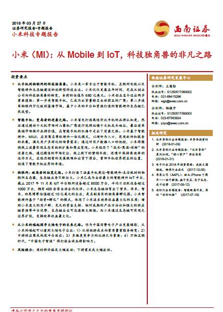 小米(MI)科技专题报告:从Mobile_到IoT,科技独角兽的非凡之路.pdf