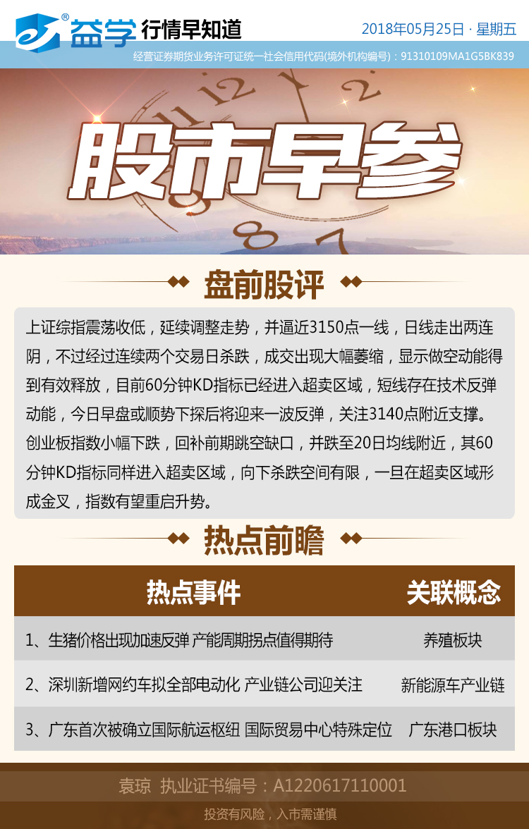 超卖区域,短线存在技术反弹动能,今日早盘或顺势下探后将迎来一波反弹,关注3140点附近支撑。创业板指数小幅下跌,回补前期跳空缺口,并跌至20日均线附近,其60分钟KD指标同样进入超卖区域,向下杀跌空间有限,一旦在超卖区域形成金叉,指数有望重启升势。