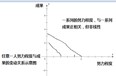并且,同时,不考察努力程度了,就是只看考试成绩,班级名次。是简单化认为,考试成绩好,那就是努力程度高,名次提高了,那就是更加努力了。换句话说,这里是已经认为,已经假定,努力程度和结果是高度正相关的,有大概率的相关。虽然不是线性的相关,但是,是高度的相关。