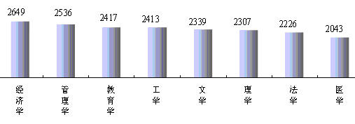 同时,《2009年四川省大学毕业生就业报告》显示,四川省2008届本科毕业生毕业半年后平均月收入为2392元、高职高专为1681元,而2007届分别为2298元、1716元。在金融危机影响、全国大学毕业生半年后平均月收入(2133元)下降的情况下,四川省2008届本科毕业生的半年后平均月收入反而有所增长;但高职高专毕业生较上一届略有下降。四川省2008届本科毕业生毕业半年后平均月收入最高的专业大类为工学类(2268元),最低为历史学类(1676元)。