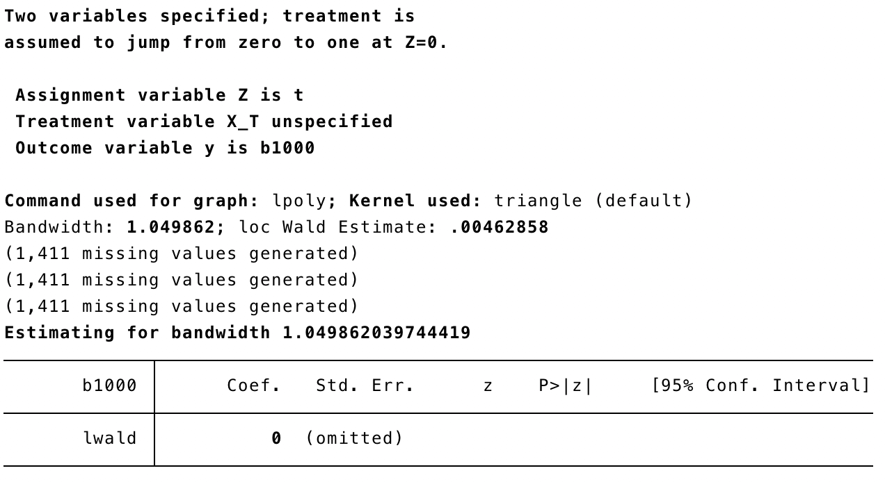 如下图,我用的xi:rd y x,gr mbw(100) cov(XXX)这个命令,为什么会omitted。。。